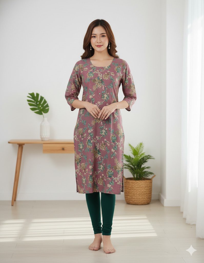 This printed rayon pastel pink kurti is all about comfort with charm. Crafted in breathable rayon fabric, it feels light on the skin and drapes beautifully. The subtle prints add a touch of sophistication, while the soothing pastel pink shade gives you a fresh, feminine look — ideal for daily wear, office, or casual outings.